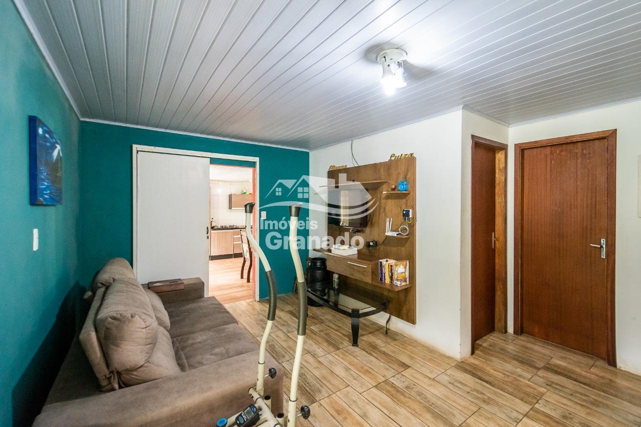 Casa 3: Madeira, 2 quartos, sala, cozinha e banheiro.